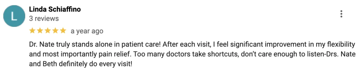 Our goal is to get our patients back to doing the things they love with the people they love without drugs, needles or surgery and in as painless a way as possible.